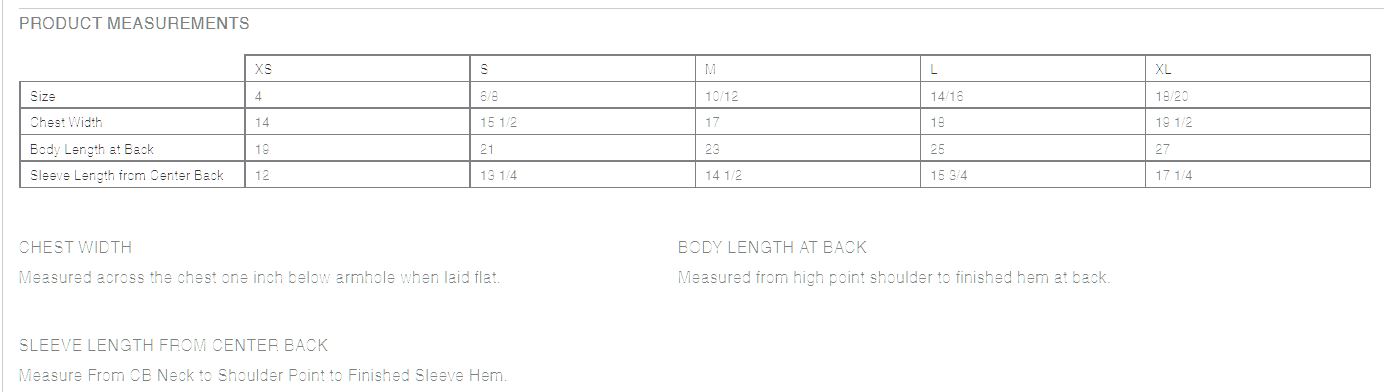 Click to view sizing chart.